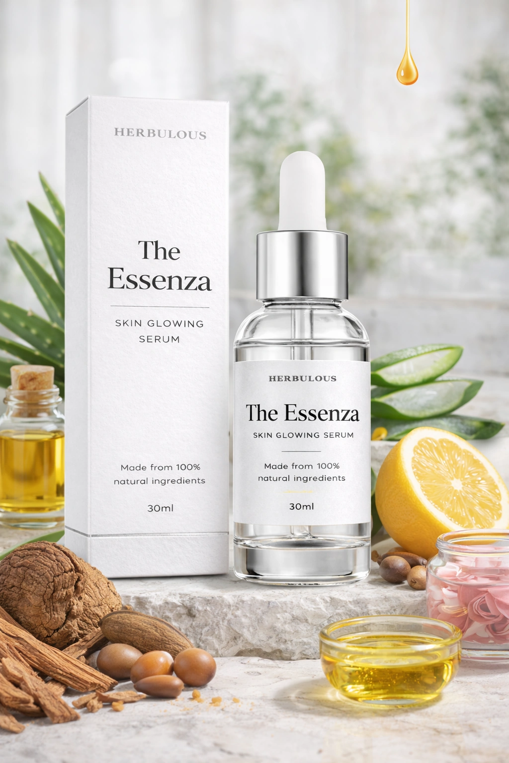 The Essenza by Herbulous is a lightweight facial serum that deeply hydrates, brightens, and revitalizes skin for a smooth, radiant, youthful glow.