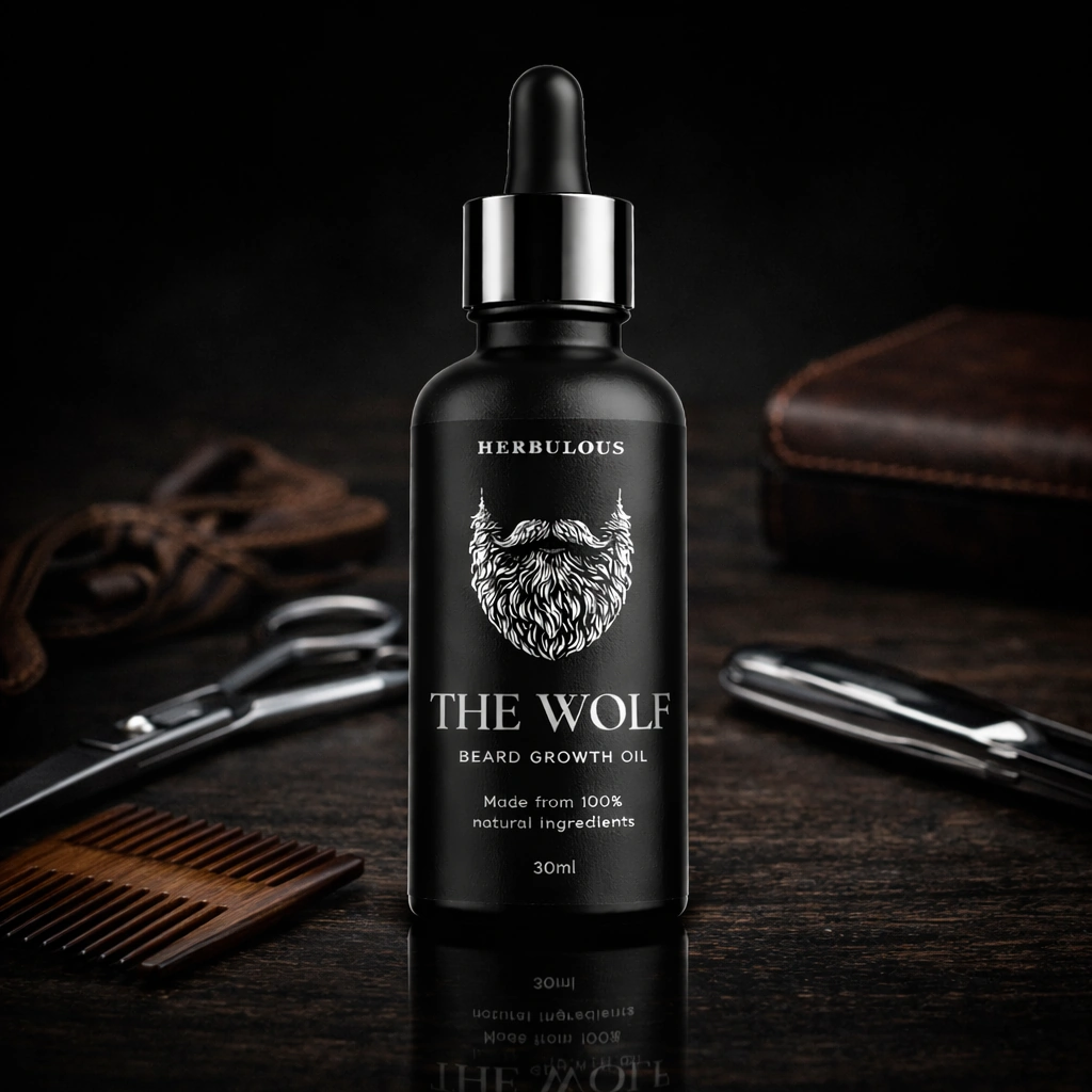 The Wolf Beard Growth Oil nourishes beard hair, strengthens follicles, and promotes thicker, fuller beard growth with premium natural oils.